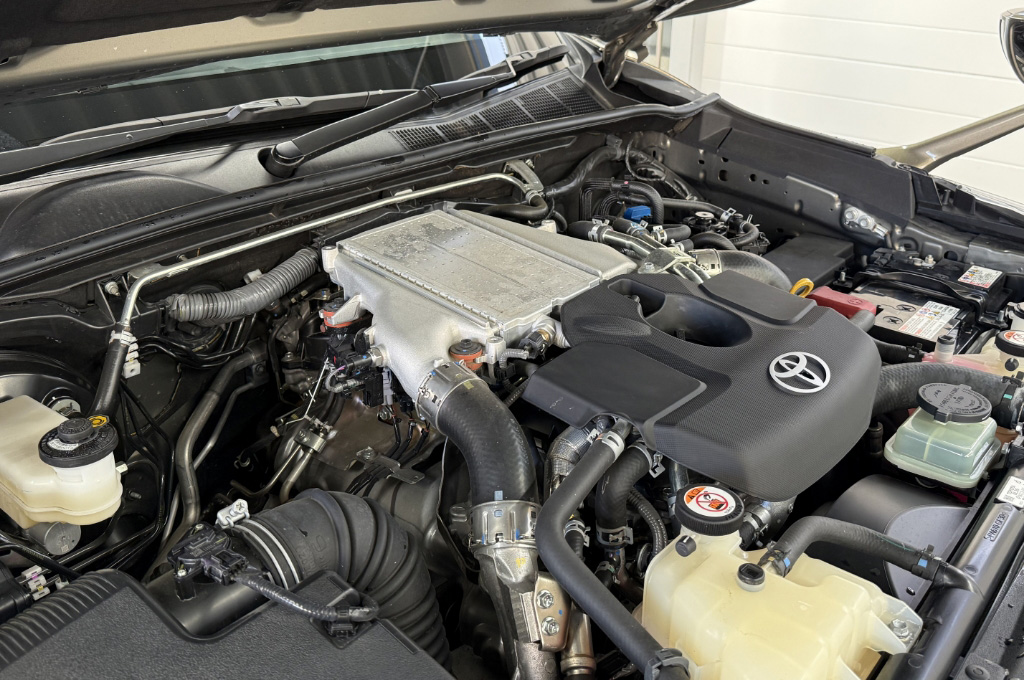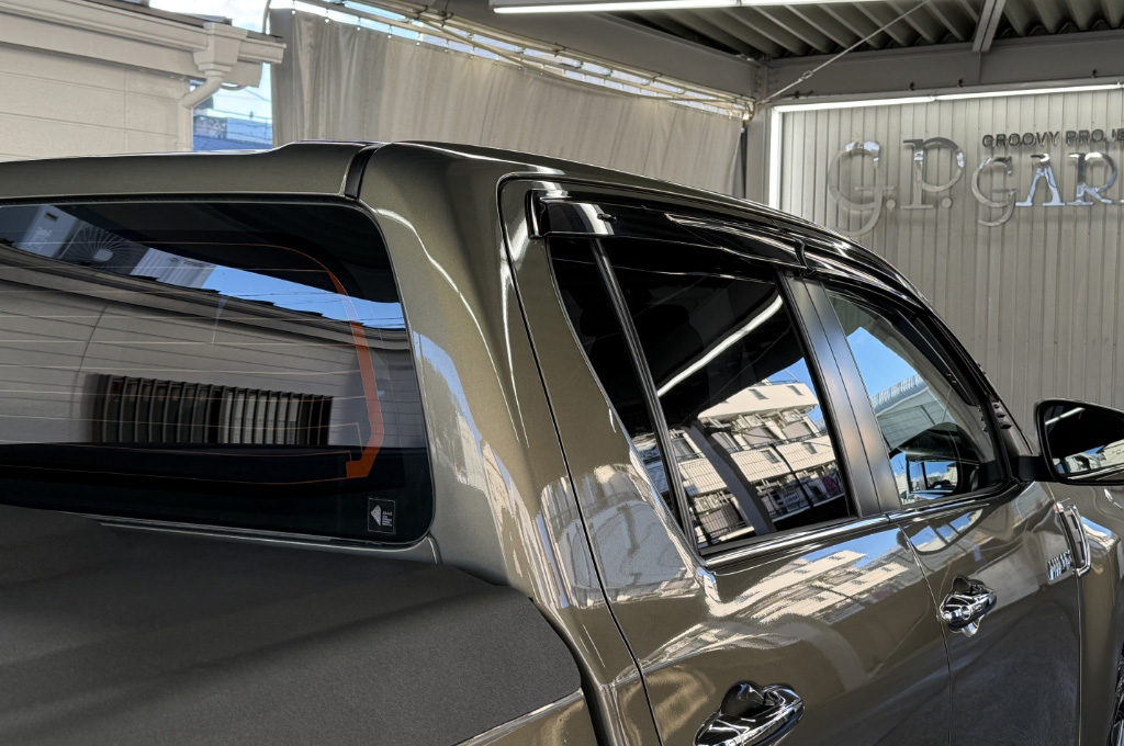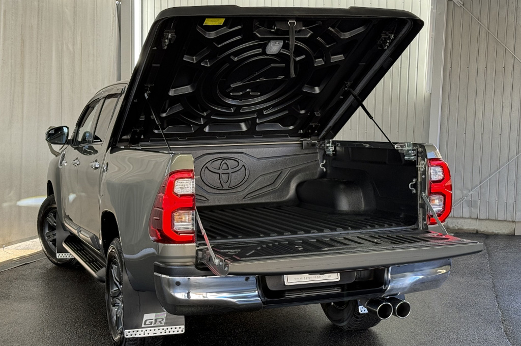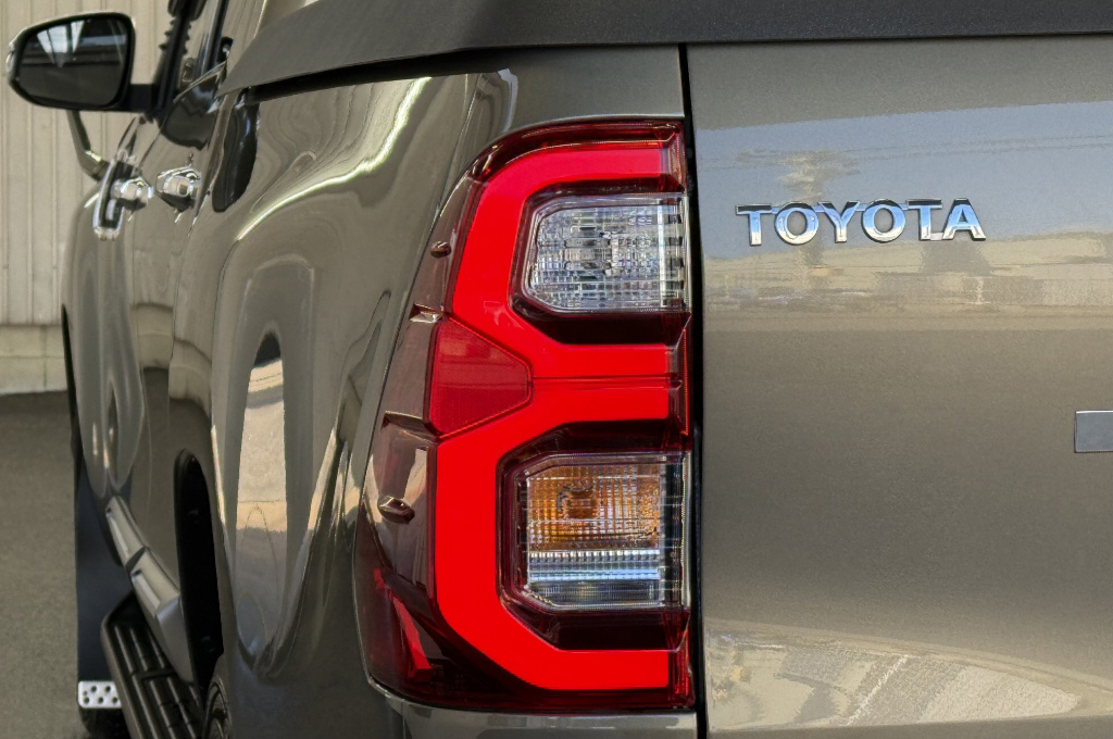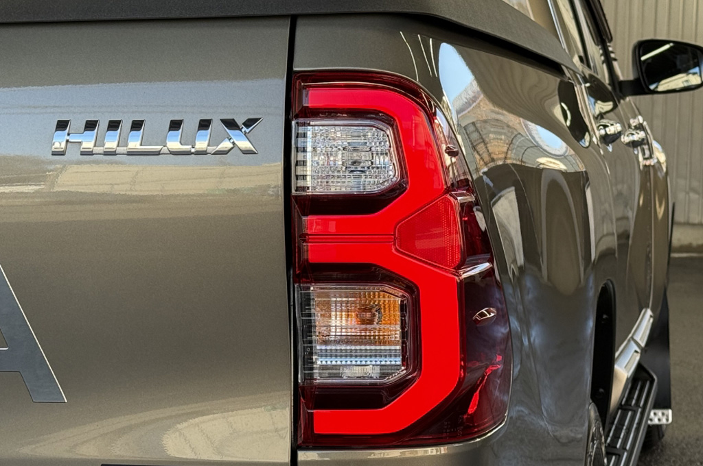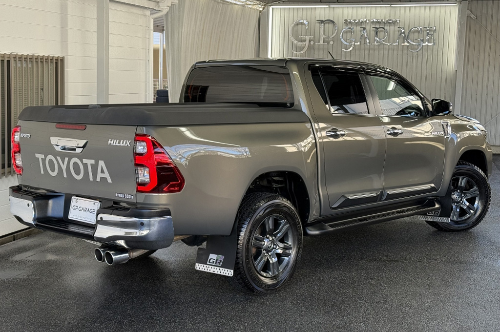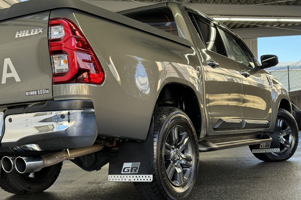 テールゲートのTOYOTAデカールと2本出しマフラーで後ろ姿もカッコいい1台です!