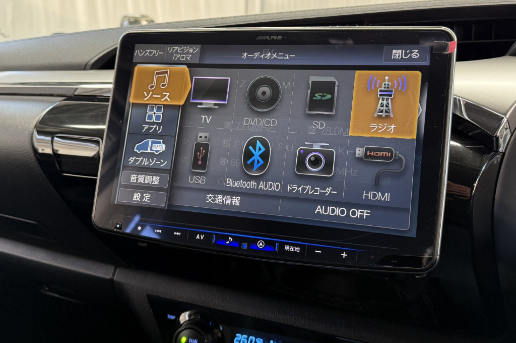 アルパインBIG-X 11インチフルセグ、DVD再生、CD、ラジオ!ブルートゥース対応でメディアも充実しています♫