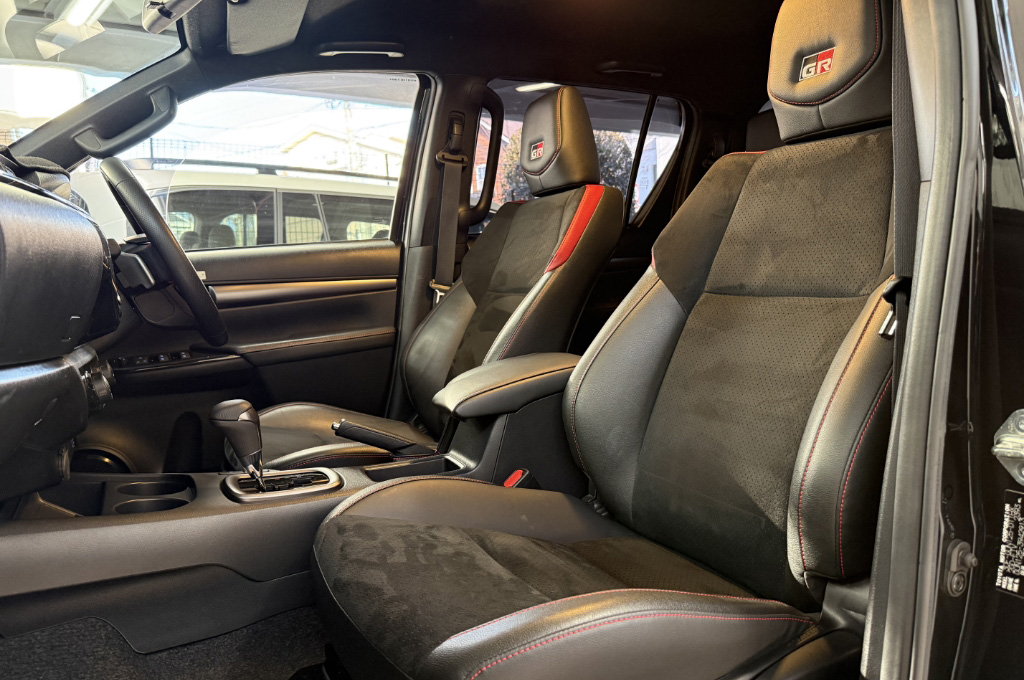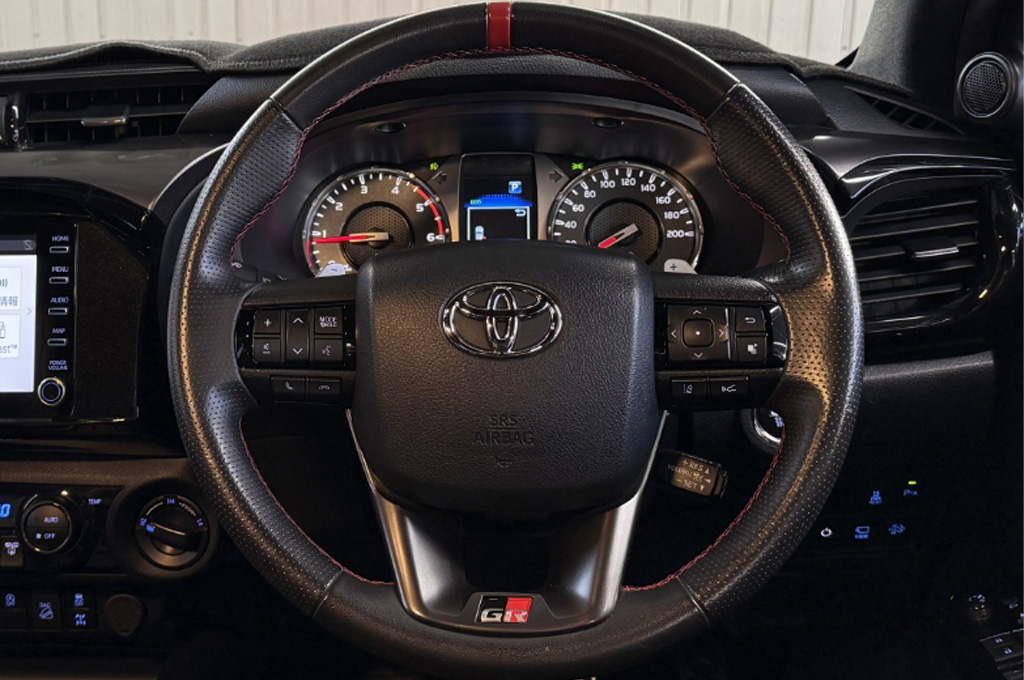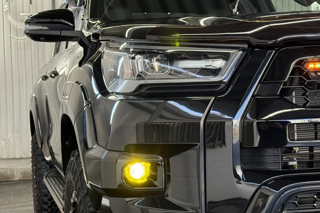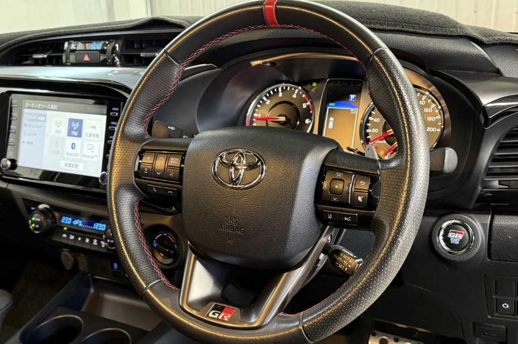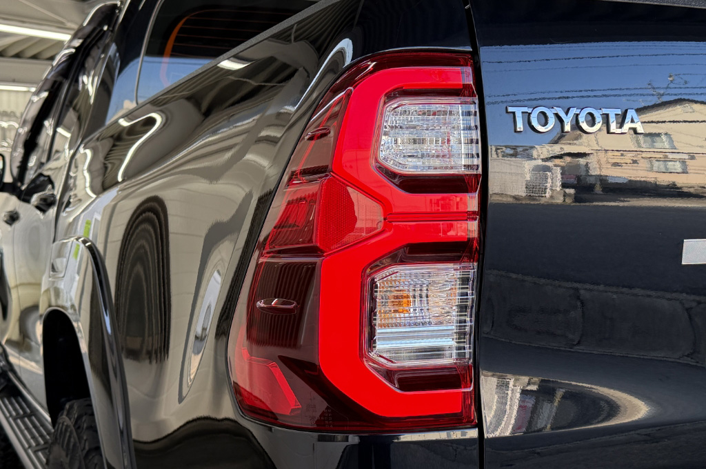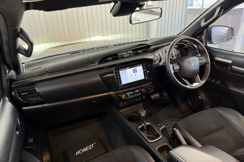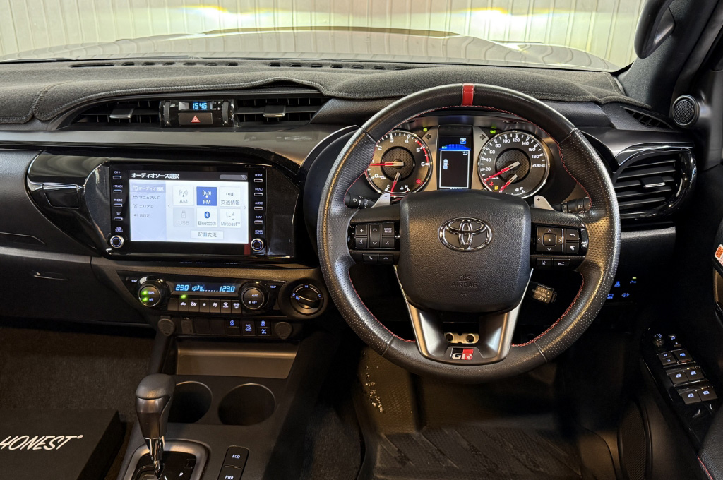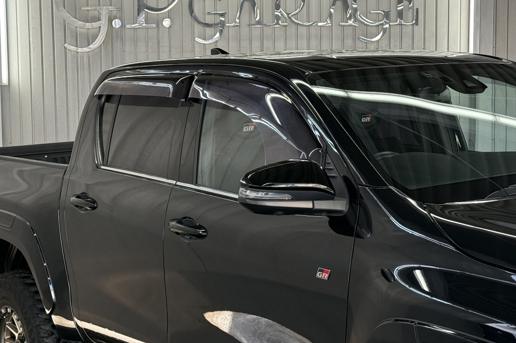 TOYOTAデカールとFUJITSUBO2本出しマフラーで後ろ姿もカッコイイ!ハイラックスZ GRスポーツのアティチュードブラックマイカが入庫しました♪