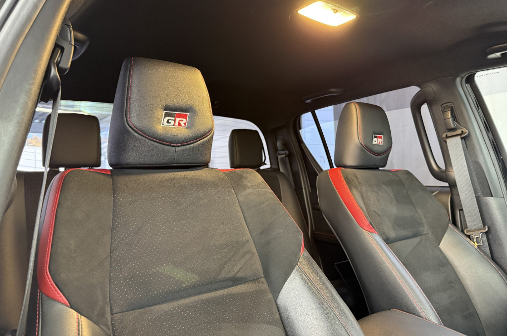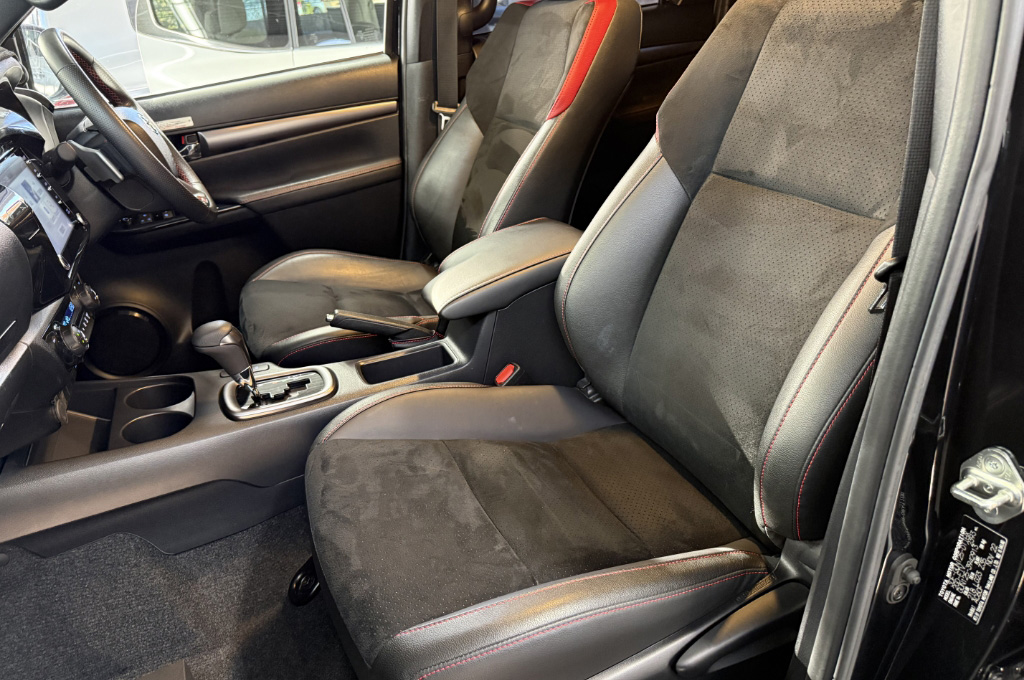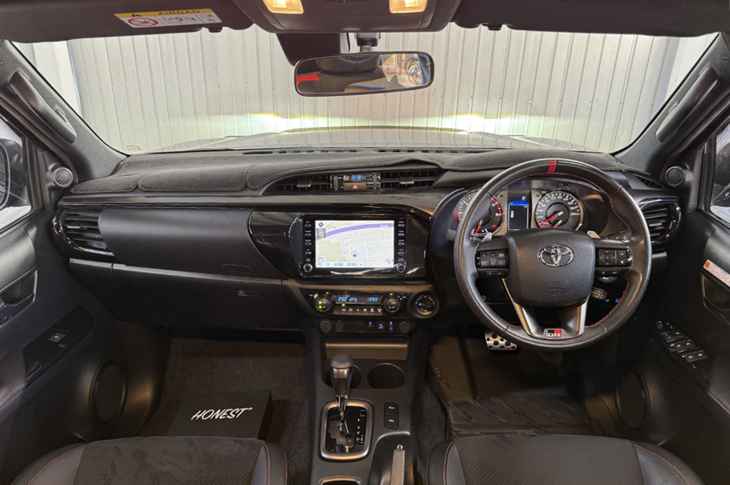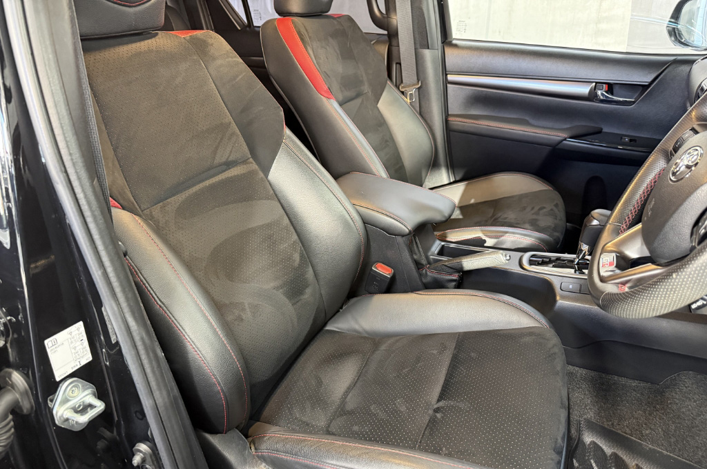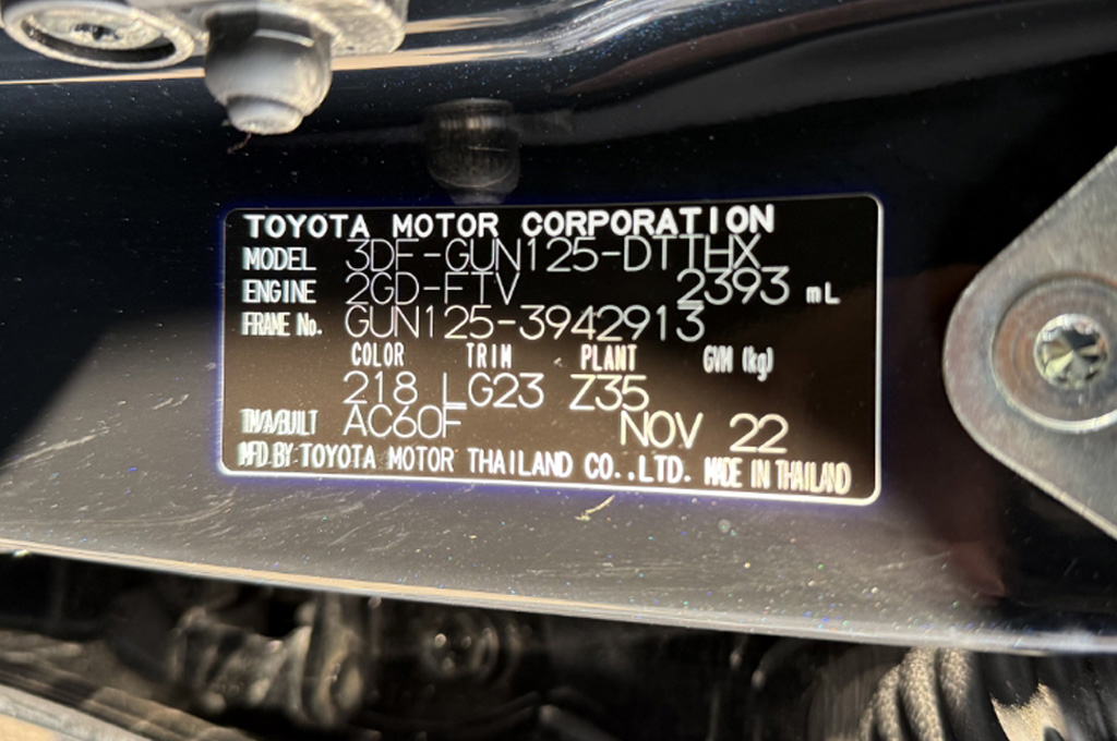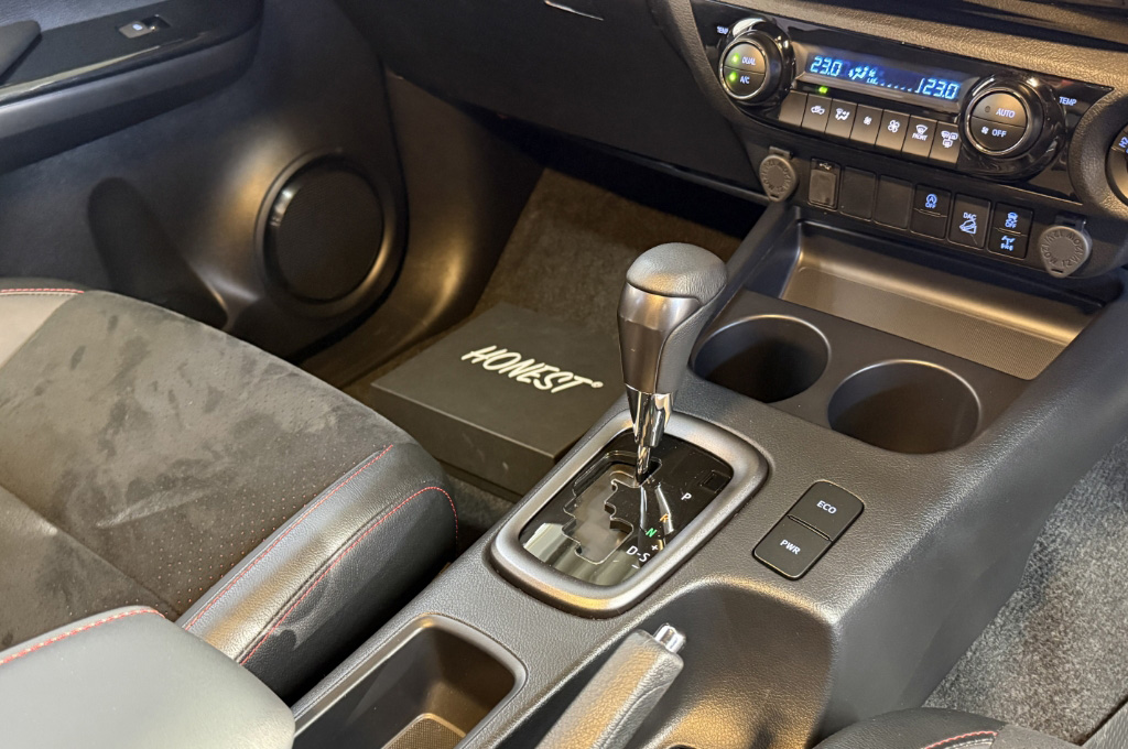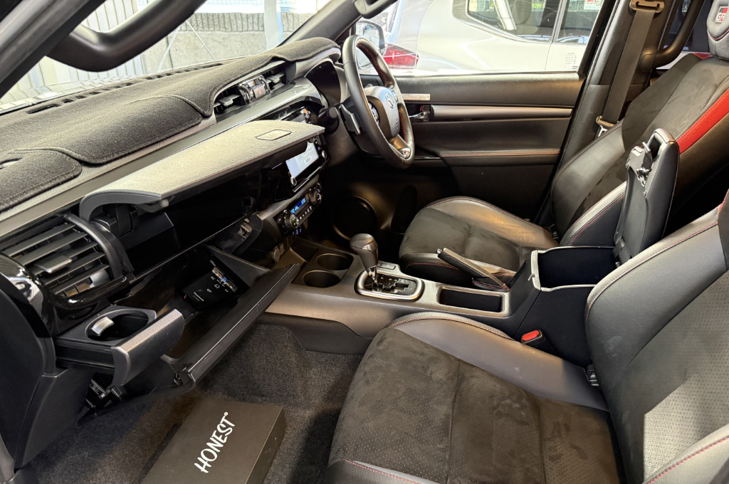 TOYOTAデカールとFUJITSUBO2本出しマフラーで後ろ姿もカッコイイ!ハイラックスZ GRスポーツのアティチュードブラックマイカが入庫しました♪