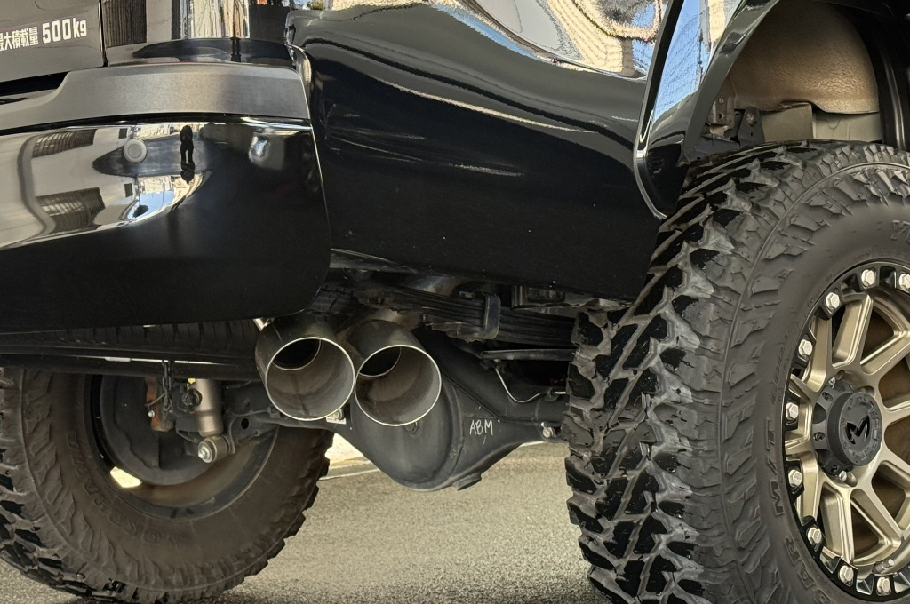 足元はKWM KM-205ホイールにジオランダーMTタイヤ!前後リフトアップ済みです!